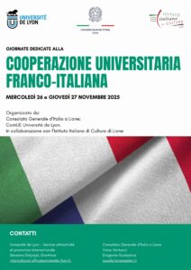 MERCOLEDÌ 26 e GIOVEDÌ 27 NOVEMBRE 2025 Organizzato da: Consolato Generale d’Italia a Lione; ComUE Université de Lyon. In collaborazione con l’Istituto Italiano di Cultura di Lione Per consultare il programma, cliccare qui.